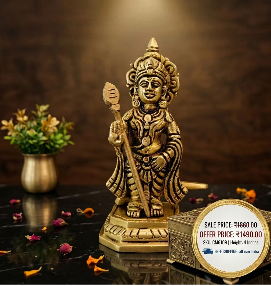 Apart from pooja use, the Brass Bala Murugan Idol 4 Inch also serves as beautiful spiritual home decor. It adds traditional elegance to your entrance area, living room, office desk, pooja room, or decorative shelf. The divine form of Bala Murugan creates a peaceful and welcoming environment.