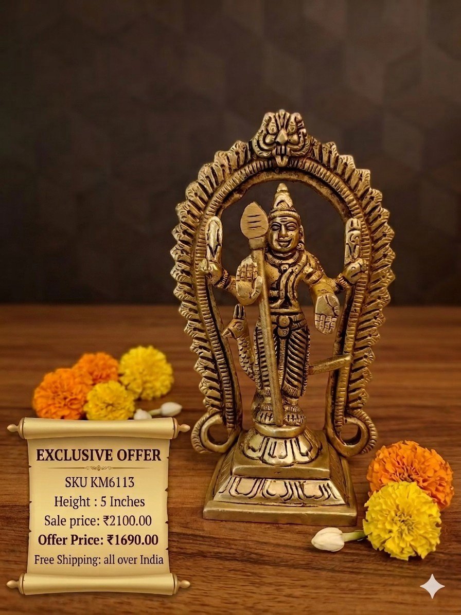 Bringing home the Premium Brass Murugan Arch Idol 5 Inch is a step towards inviting divine energy, positivity, and spiritual harmony into your life.